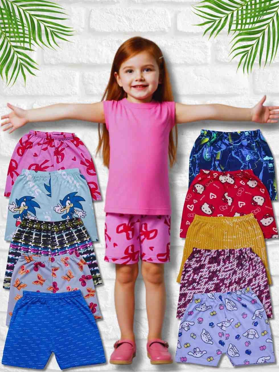 Cutiepie Comfy Kids Printed Cotton Shorts with Pack of 10 (Random Colors)