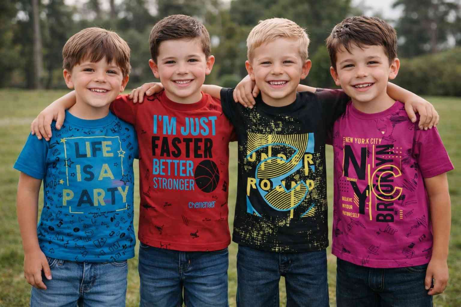 Brighten Up Your Little One’s Wardrobe with Our Boys’ Half-Sleeve Multi-Color Printed Cotton T-Shirts!