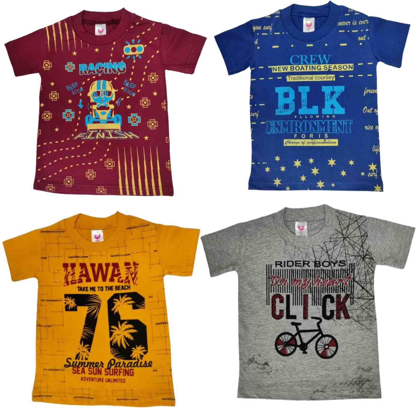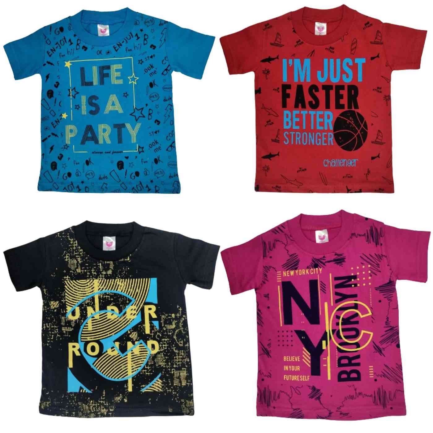 Boys’ Trendy Half-Sleeve Cotton T-Shirts with Colorful Prints with Pack of 4