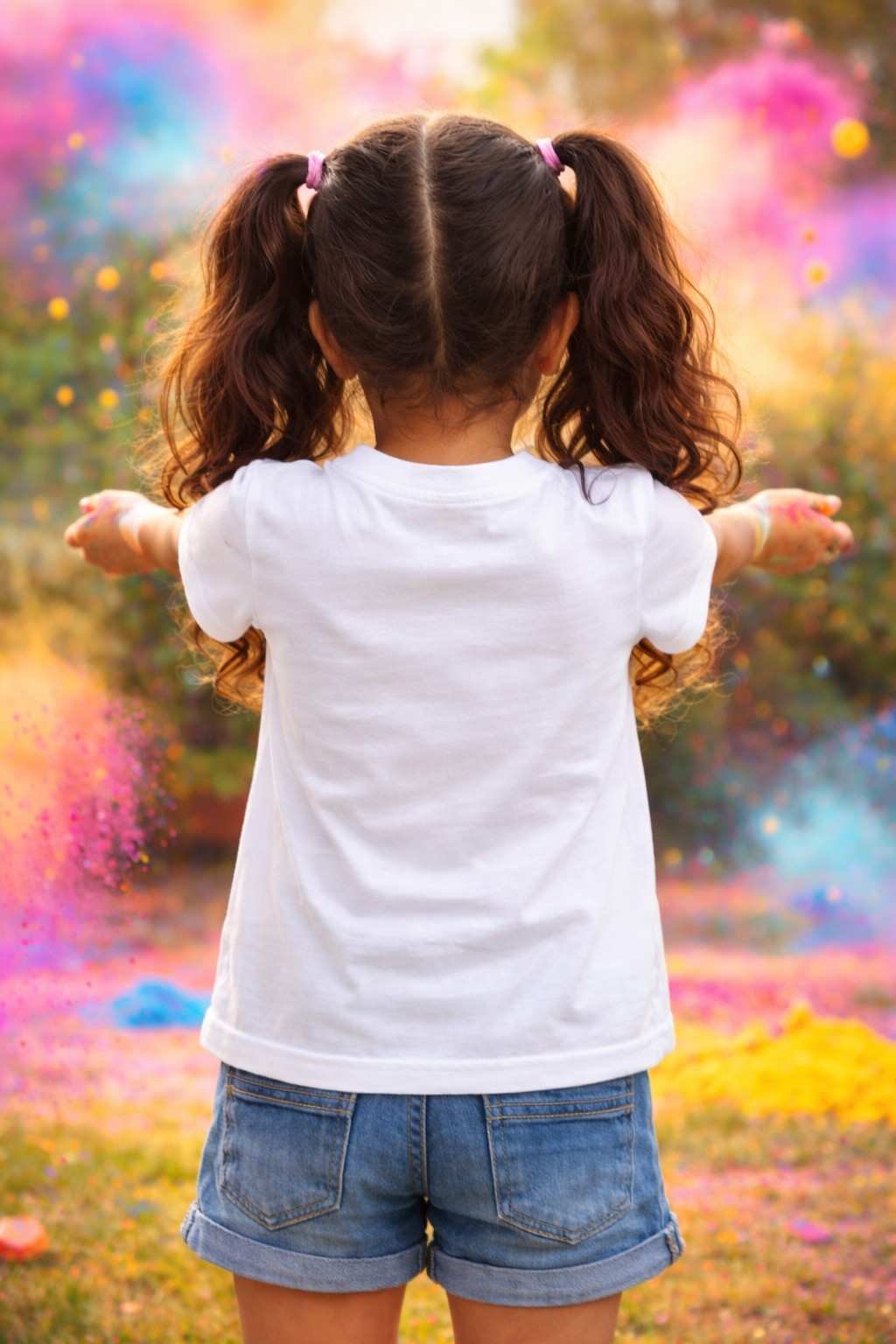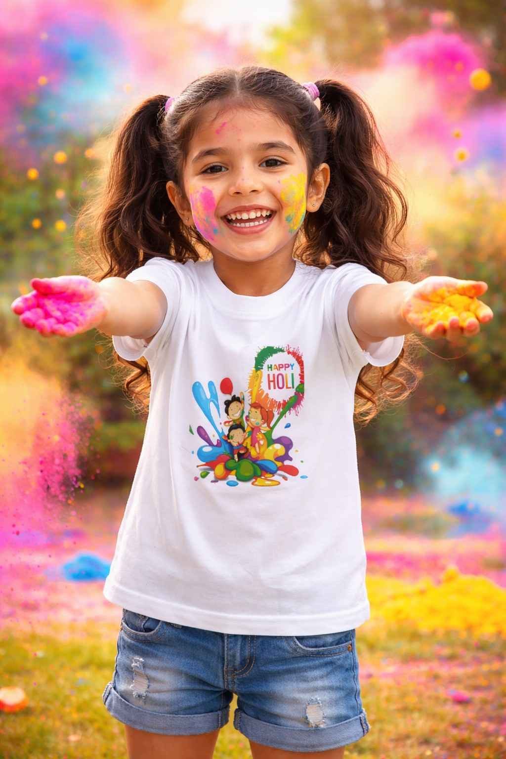 Playful Holi Festival’s Pure White Cotton Round Neck T-Shirt for Girls(5 Months to 16 Years) Holi Tshirt